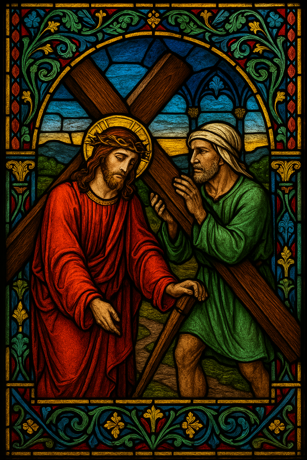 By the time I finished helping and got back in my car, I picked up my Rosary again. As I prayed through the rest of the Sorrowful Mysteries, I could not shake what had just happened. When I reached the Fourth Mystery, the Carrying of the Cross, I shed a tear. I realized the point of this week’s blog had just been given to me. All those other idea, were going to be for another week. Today, I was not just praying the Rosary. I had lived a piece of it. I had been given the chance to be Simon of Cyrene for a neighbor in need on the side of the road.